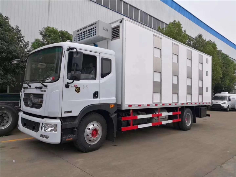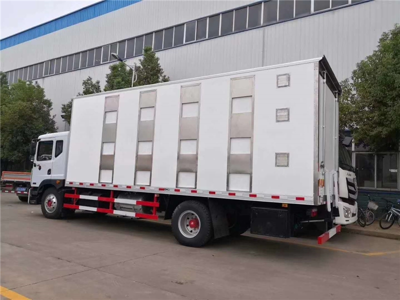 【豬苗車】上裝配置:外玻璃鋼,內(nèi)不銹鋼,兩層液壓升降層板,尾部液壓翻轉(zhuǎn)上豬平臺,層板為不銹鋼骨架鋪鋁花紋板。外部電動升降窗,排氣扇,柴油發(fā)電機,暖風加熱,喂水系統(tǒng),凈水箱、污水箱,箱內(nèi)攝像頭監(jiān)控,倒車影像,凱利制冷機組。(油暖加熱為選裝部件)